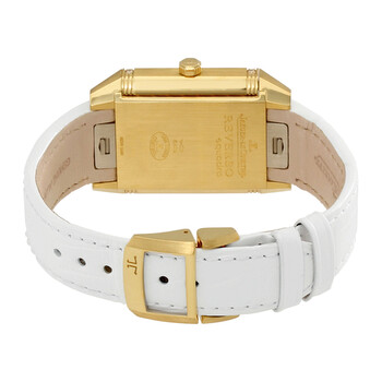 18kt yellow gold case with a white leather strap. Fixed 18kt yellow gold set with diamonds bezel. Silver dial with gold-tone hands and Arabic numeral hour markers. Minute markers around an inner ring. Dial Type: Analog. Jaeger LeCoultre Calibre JLC 968 Automatic movement, containing 28 Jewels, composed of 207 parts, bitting at 28800 vph, and has a power reserve of approximately 38 hours. Scratch resistant sapphire crystal. Pull / push crown. Solid case back. Rectangle case shape, case size: 42 mm x 28.8 mm, case thickness: 10.75 mm. Deployment clasp. Water resistant at 50 meters / 165 feet. Functions: hour, minute, second. Reverso squadra lady series. Luxury watch style. Watch label: Swiss Made. Item Variations: Q7031420, 7031420, 703.14.20, Q703.14.20. Jaeger LeCoultre Reverso Squadra Silver Dial Ladies Watch Q7031420.