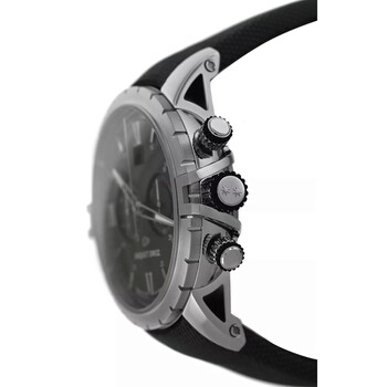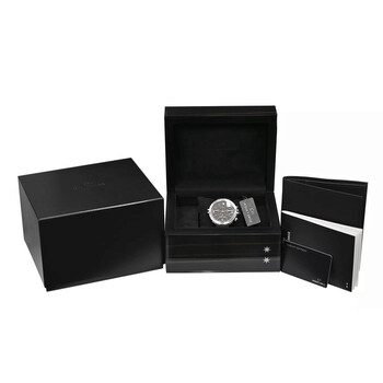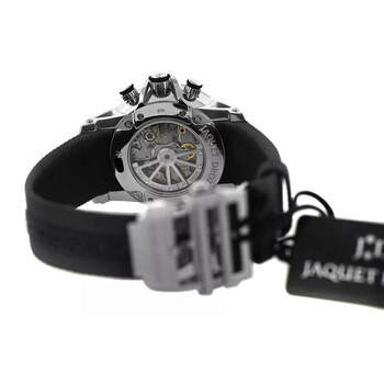 Silver-tone stainless steel case with a black leather strap. Silver-tone stainless steel bezel. Grey dial with silver-tone hands and Roman numeral & index hour markers. Minute markers around the outer rim. Dial Type: Analog. Luminescent hands and markers. Date display at the 12 o'clock position. Chronograph - two sub-dials displaying: 12 hour, 30 minute. Jaquet Droz Calibre 6885-S Automatic movement, containing 37 Jewels, bitting at 21600 vph, and has a power reserve of approximately 48 hours. Scratch resistant sapphire crystal. Transparent see through case back. Round case shape, case size: 45 mm. Fold over clasp with a safety release. Water resistant at 50 meters / 165 feet. Functions: chronograph, big date, hour, minute, second. Grande Seconde Sw Series. Casual watch style. Watch label: Swiss Made. Jaquet Droz Grande Seconde Sw Chronograph Automatic Grey Dial Men's Watch J029530541.