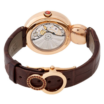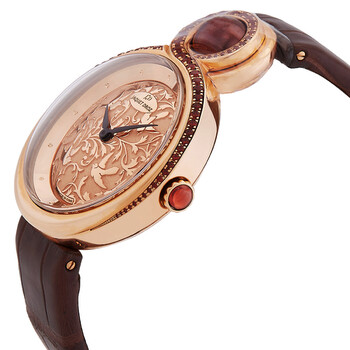 18k rose gold case with a brown alligator leather strap. Fixed with set diamonds bezel. Rose gold dial with black steel hands and index hour markers. Dial Type: Analog. Automatic movement. Caliber 1153 engine. Scratch resistant sapphire crystal. Skeleton transparent exhibition see through case back. Case diameter: 35 mm. Unique case shape. Deployment clasp. Water resistant at 30 meters / 100 feet. Functions: hour, minute. Luxury watch style. Jaquet Droz Lady 8 Rose Gold Dial Brown Alligator Leather Automatic Ladies Watch J014503200.