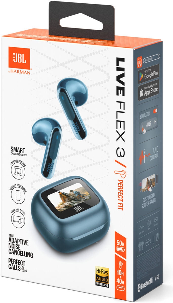 JBL Live Flex 3 True Wireless Noise Cancelling Earphones With Screen Blue