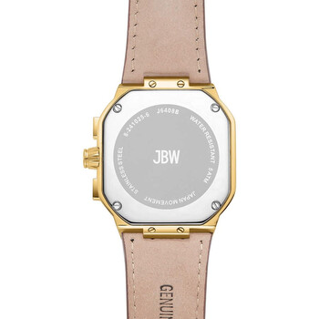 Yellow gold-tone stainless steel case with a brown crocodile leather strap. Fixed yellow gold-tone stainless steel bezel. Gold-tone dial with yellow gold-tone hands and index hour markers. Minute markers around the outer rim. Dial Type: Analog. Luminescent hands. Three sub-dials displaying: date, 24 hour and 24 hour. Miyota Caliber JP25 automatic movement. Scratch resistant mineral crystal. Pull / push crown. Solid case back. Oval case shape, case size: 39 mm, case thickness: 12 mm. Band width: 24 mm, band length: 8 inches. Buckle clasp. Water resistant at 50 meters / 165 feet. Functions: date, day, hour, minute, second. Additional Info: the orion embodies luxury timekeeping with its commanding oval case and sophisticated functionality. twelve precision-cut diamonds encircle a meticulo. Orion Collection Series. Casual watch style. Watch label: Japan Movt. JBW Orion Collection Automatic Gold Dial Men's Watch J6408B.