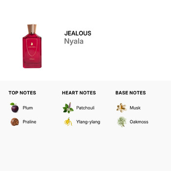 Nyala opens with a delicious burst of plum and praline, creating a sweet and fruity top layer that instantly grabs attention. As the scent unfolds, the heart reveals warm, earthy notes of patchouli and exotic ylang-ylang, adding depth and a touch of mystery. The base settles into a smooth finish of musk and oakmoss, leaving a lasting impression that is both refined and unforgettable.