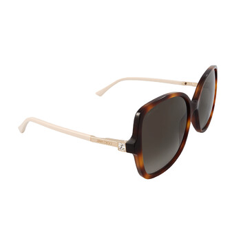Jimmy Choo Sunglasses. Series number: JUDY/S. Color code: 0086/HA. Shape: Square. Lens Width: 57 mm. Lens Bridge: 18 mm. Arm Length: 145 mm. 100% UV protection. Frame Material: Plastic. Frame Color: Tortoise. Lenses Type: Brown Gradient. Rim Style: Full-Rim. UPC/EAN code: 716736351322. Jimmy Choo Brown Gradient Square Ladies Sunglasses JUDY/S 0086/HA 57.