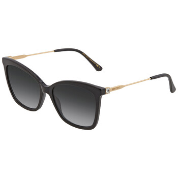 Jimmy Choo Sunglasses. Color code: 0807/9O. Shape: Butterfly. Lens Width: 55 mm. Lens Bridge: 17 mm. Arm Length: 145 mm. 100% UV protection. Frame Material: Plastic. Frame Color: Black. Lenses Type: Dark Grey Gradient. Rim Style: Full-Rim. UPC/EAN code: 716736410456. Jimmy Choo Dark Grey Gradient Butterfly Ladies Sunglasses MACI/S 0807/9O 55.