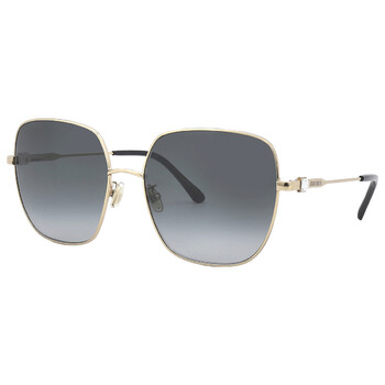 Jimmy Choo Sunglasses. Series number: KORI/G/SK. Color code: 0RHL/9O. Shape: Butterfly. Lens Width: 60 mm. Lens Bridge: 18 mm. Arm Length: 145 mm. 100% UV protection. Frame Material: Metal. Frame Color: Gold. Lenses Type: Grey Gradient. Rim Style: Full-Rim. UPC/EAN code: 716736410883. Jimmy Choo Grey Gradient Butterfly Ladies Sunglasses KORI/G/SK 0RHL/9O 60.