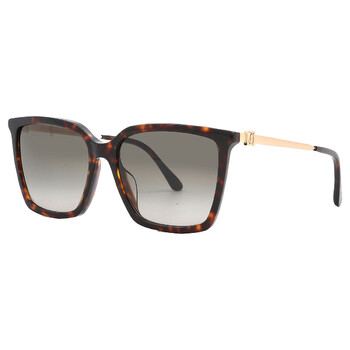 Jimmy Choo Sunglasses. Series number: TOTTA/G/S. Color code: 0086/HA. Shape: Square. Lens Width: 56 mm. Lens Bridge: 17 mm. Arm Length: 145 mm. 100% UV protection. Non-Polarized. Frame Material: Acetate. Frame Color: Tortoise. Lenses Type: Grey Gradient. Rim Style: Full-Rim. UPC/EAN code: 716736768991. Jimmy Choo Grey Gradient Square Ladies Sunglasses TOTTA/G/S 0086/HA 56.