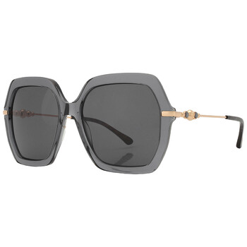 Jimmy Choo Sunglasses. Series number: ESTHER/S. Color code: 0C8W/IR. Shape: Hexagonal. Lens Width: 57 mm. Lens Bridge: 18 mm. Arm Length: 145 mm. 100% UV protection. Non-Polarized. Frame Material: Plastic. Frame Color: Grey Mother Of Pearl. Lenses Type: Grey. Rim Style: Full-Rim. UPC/EAN code: 827886015603. Jimmy Choo Grey Hexagonal Ladies Sunglasses ESTHER/S 0C8W/IR 57.