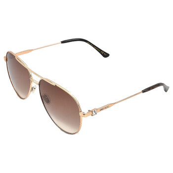 Jimmy Choo Olly Women's sunglasses. Gold Copper metal aviator frames and non-polarized brown gradient lenses. 60mm x 14mm x 145mm. Made in Italy.