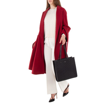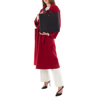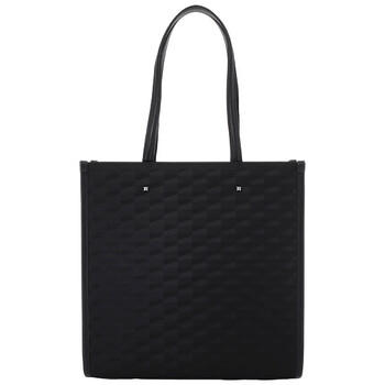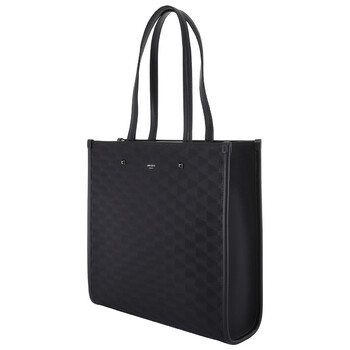 Jimmy Choo Men's Tote. SKU: J000166585-BLACK/GUNMETAL. Barcode: 197255147496. Color: Black. Jimmy Choo North-South Jacquard Tote Bag. This jacquard tote bag features a front logo stamp, spike stud detailing, two long top handles, a spacious main compartment, an internal zip-fastening pocket, and an internal logo patch. Outer: Nylon 80%, Calf Leather 15%, Brass 5%. Made in Italy.