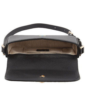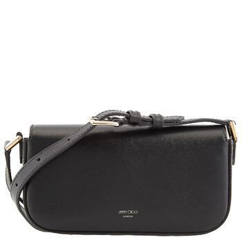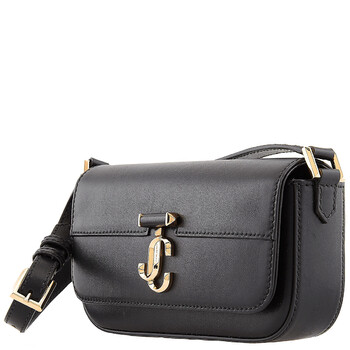 Jimmy Choo Ladies Shoulder Bag. SKU: VARENNE MINI SHLDR-BLACK/LT GOLD. Color: Black. Size: 11 x 20.5 cm. Jimmy Choo Varenne Mini Leather Shoulder Bag. Crafted from leather, the Varenne bag features a snap closure, a JC monogram plaque on the front, an adjustable shoulder strap, a printed logo at the back, light gold-tone hardware, and a single internal compartment with a card slot. 100% Leather. Made in Italy.