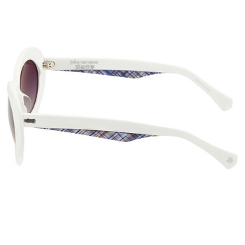 John Varvatos Sunglasses. Series number: V537. Color code: WHI. Shape: Cat Eye. Lens Width: 52 mm. Lens Bridge: 21 mm. Arm Length: 145 mm. 100% UV protection. Frame Material: Plastic. Frame Color: White. Lenses Type: Lilac Gradient. Rim Style: Full-Rim. UPC/EAN code: 751286335040. John Varvatos Lilac Gradient Cat Eye Ladies Sunglasses V537 WHI 52 .
