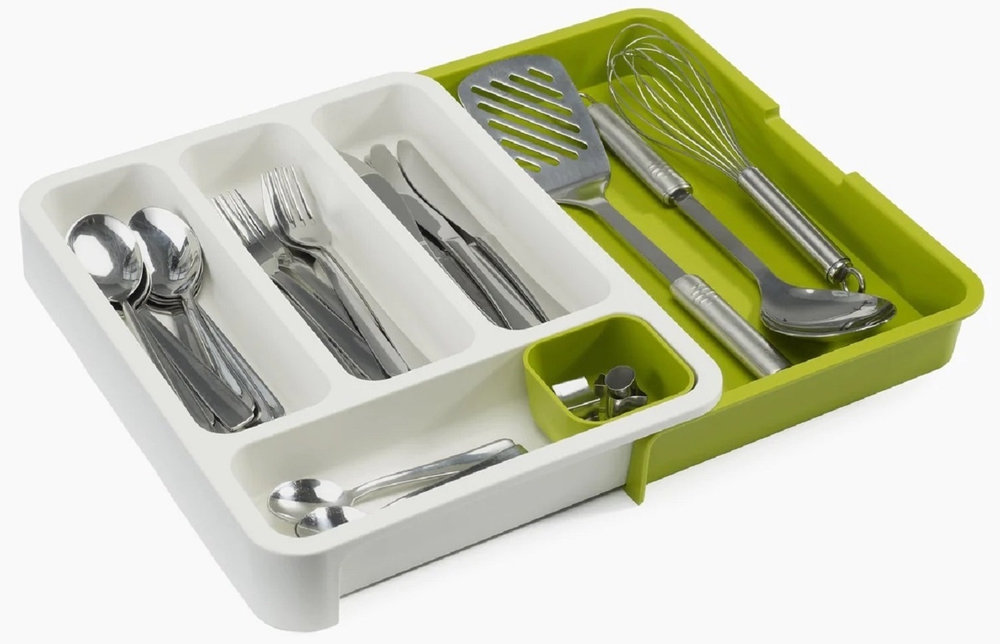 Joseph Joseph, სამზარეულოს აქსესუარების ორგანაიზერი საუკეთესო ატრიბუტია სამზარეულოში სივრცის დასაორგანიზებლად. ორგანაიზერს აქვს 6 სხვადასხვა ზომის განყოფილება. ორგანაიზერი ასევე იშლება და იკეცება ნივთების რაოდენობისა და უჯრის ზომის მიხედვით.