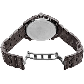 Gunmetal-plated composite metal case with a gunmetal-plated stainless steel bracelet. Fixed gunmetal-plated composite metal bezel. Silver (triple time zone) dial. Dial Type: Analog. Quartz movement. Scratch resistant sapphire crystal. Pull / push crown. Solid case back. Round case shape. Case size: 46 mm. Case thickness: 11 mm. Band width: 22 mm. Band length: 8 inches. Hidden fold over clasp. Water resistant at 30 meters / 100 feet. Functions: hour, minute, second. Fashion watch style. Joshua and Sons Quartz Silver Triple Time Zone Dial Men's Watch JX128GN.