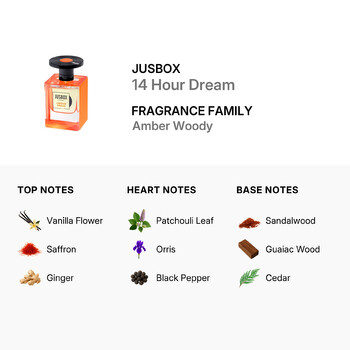 Part of the Amber Woody fragrance family, Jusbox 14 Hour Dream is perfect for those who love scents that are both sensual and sophisticated. Whether you're heading out for an evening event or simply want to elevate your everyday style, this fragrance adds a touch of magic to any moment.