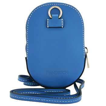 JW Anderson Men's Crossbody. SKU: HB0232-LA0020-BLUE. Barcode: 5057543486001. Closure Type: Zip-Up. Color: Blue. Size: H: 8cm x W: 13cm x D: 9.5cm. JW Anderson Blue Nano Cap Mini Crossbody Bag. The nano cap crossbody bag from JW Anderson featuring debossed logo to the rear, contrast stitching, top zip fastening and single shoulder strap.