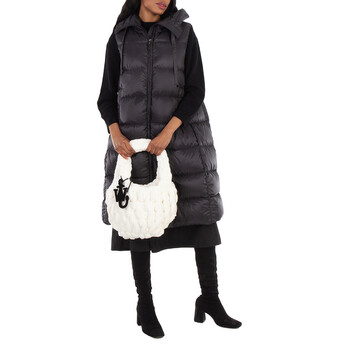 JW Anderson Ladies Bucket Bag. SKU: HB0655-YN0362-OFF WHITE. Color: Off White. Size: 25 x 39 x 10 cm. JW Anderson Off White Small Blanket Shopper Bag. Crafted from polyester with a woven effect for a cozy aesthetic, this bag features a chenille texture, a press-button closure, an internal cotton pocket, and a JW logo charm. 100% Polyester.