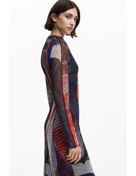 კაბა DESIGUAL - PRINTED TULLE MIDI DRESS