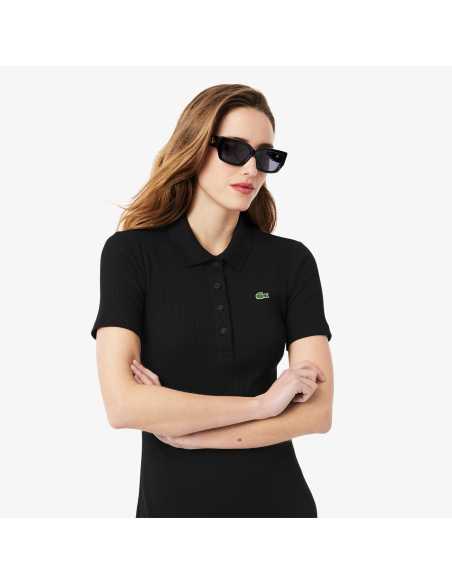 კაბა Lacoste - Women's Long Ribbed Cotton Polo Dress