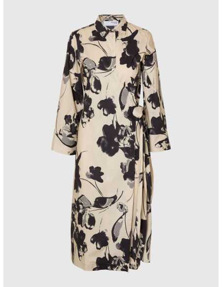 კაბა SELECTED FEMME - SLFAVIANA LS AOP MIDI WRAP DRESS B