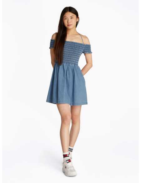 კაბა Tommy Jeans - TJW CHAMBRAY FIT & FLARE DRESS