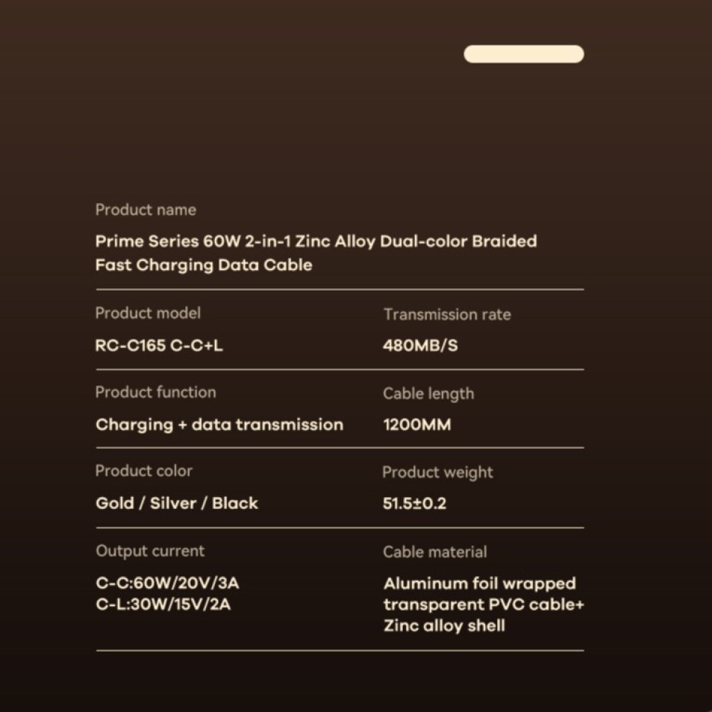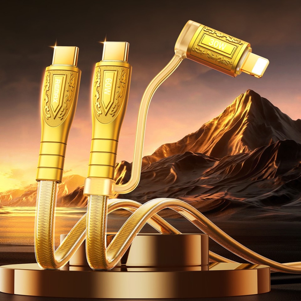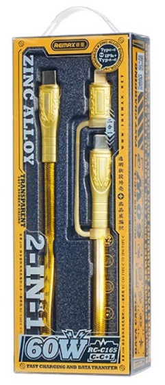 კაბელი Remax RC-C165 Dual-Purpose 60 W Fast Charging Cable Gold