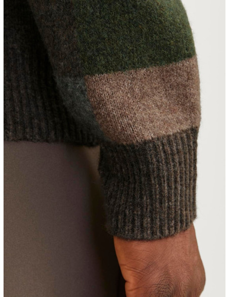 64% პოლიესტერი - გადამუშავებული; 18% აკრილი; 9% ბამბა; 6% ალპაკა; 3% ელასტანი