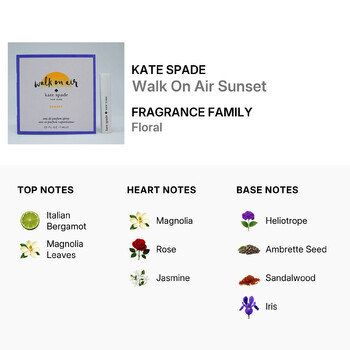Step into a world of charm and elegance with Kate Spade Walk On Air Sunset Eau de Parfum Spray for Ladies. This delightful fragrance, crafted by the iconic American design house Kate Spade, captures the magic of fading sunlight and fresh evening air. Perfectly sized at 0.03 oz, it’s ideal for sampling or tucking into your purse for a quick refresh anytime, anywhere.