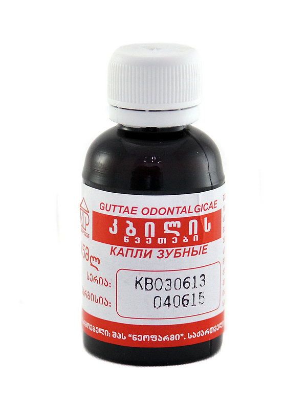 5-10 წვეთი 2-3-ჯერ დღეში დაზიანებულ კბილში ჩასადებად ბამბით.