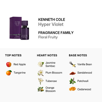 Step into a world of bold elegance with Kenneth Cole Ladies Hyper Violet Eau de Parfum Spray, a captivating fragrance launched in 2024. Designed for the modern woman, this 1.0 oz perfume is part of the Floral Fruity family, offering a vibrant blend of freshness and warmth that leaves a lasting impression.