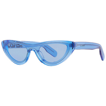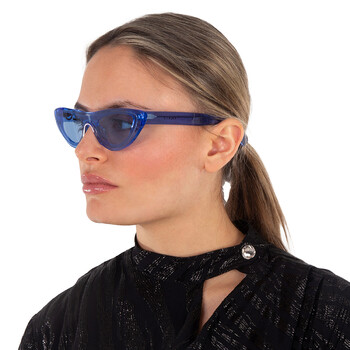 Kenzo Sunglasses. Series number: KZ40007I. Color code: 84V. Shape: Cat Eye. Lens Width: 00 mm. Lens Bridge: 00 mm. Arm Length: 145 mm. 100% UV protection. Non-Polarized. Frame Material: Acetate. Frame Color: Shiny Light Blue. Lenses Type: Blue. Rim Style: Full-Rim. UPC/EAN code: 192337012082. Kenzo Blue Cat Eye Ladies Sunglasses KZ40007I 84V 00.