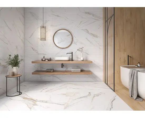 ესპანური კერამიკული ფილა Emotion ceramics, რომლის წყალობითაც პატარა სივრცეები უფრო ფართოდ გამოიყურება და ქმნის უწყვეტობის ეფექტს.