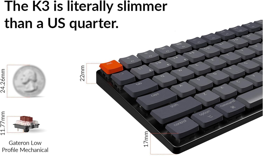 Keychron K3 84 Low Profile Hot-Swap Optical RGB Blue Switch Keyboard Gray