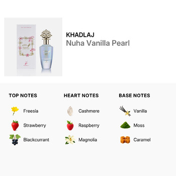 Nuha Vanilla Pearl opens with a refreshing burst of freesia, sweet strawberry, and juicy blackcurrant. These sparkling top notes instantly awaken your senses and set the tone for a truly captivating experience. As the fragrance unfolds, a heart of smooth cashmere, ripe raspberry, and blooming magnolia wraps you in a soft, feminine embrace that feels both cozy and confident.