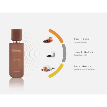 Celeste Toffee opens with delicious top notes of caramel and coffee, instantly awakening the senses with a sweet yet energizing aroma. As the scent settles, the heart notes of creamy milk and warm tonka bean add a smooth, comforting layer. Finally, the base notes of vanilla, honey, and white musk wrap the fragrance in a soft yet powerful finish, creating a well-rounded scent that evolves beautifully throughout the day.