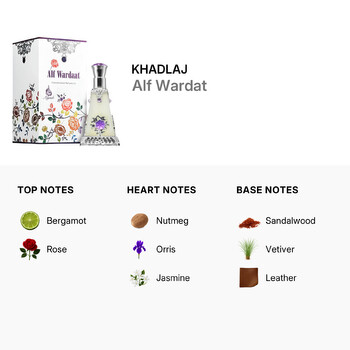 Presented by Khadlaj, a trusted name in Middle Eastern perfumery, Alf Wardat Perfume Oil is a refined treasure waiting to be experienced. Embrace a scent as unique as you are—elegant, bold, and beautifully timeless.