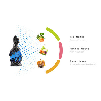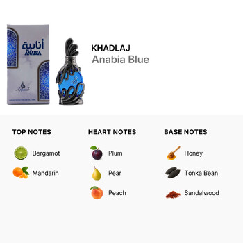 From the very first moment, Anabia Blue delights the senses with fresh top notes of bergamot and mandarin, bringing a bright and zesty introduction. As the fragrance unfolds, a juicy heart of plum, pear, and peach adds a sweet and fruity layer that feels naturally inviting. The base notes of golden honey, creamy tonka bean, and smooth sandalwood leave a lasting impression that’s both cozy and refined.