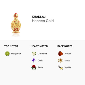 Designed by the renowned fragrance house Khadlaj, Haneen Gold is the perfect choice for those who appreciate elegance and depth in their scents. The perfume oil formulation ensures a longer-lasting aroma, making it an excellent addition to your daily routine or special occasions. Whether worn alone or layered with other fragrances, its rich composition enhances any moment with sophistication.
