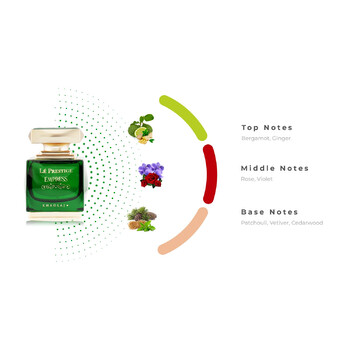 Le Prestige Empress opens with a lively burst of bergamot and ginger, offering a fresh and invigorating introduction that instantly awakens the senses. As the fragrance unfolds, delicate heart notes of rose and violet bloom, adding a soft floral touch that feels both graceful and memorable. Finally, the scent settles into a rich, earthy base of patchouli, vetiver, and cedarwood—creating a warm, lasting impression that lingers beautifully on the skin.
