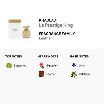 At the heart of Le Prestige King lies a harmonious blend of captivating notes. The fragrance opens with the fresh and invigorating top notes of bergamot, instantly awakening the senses. As the scent unfolds, the heart notes reveal an intriguing mix of geranium and leather, adding a layer of depth and sophistication. Finally, the base notes of orris and patchouli provide a warm and earthy foundation, leaving a lasting impression that's both elegant and memorable.