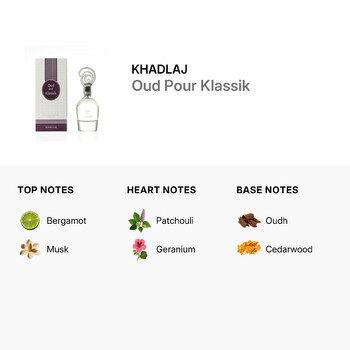Discover the captivating charm of Khadlaj Oud Pour Klassik, a luxurious unisex Eau de Parfum that embodies the mystique of Middle Eastern fragrance artistry. Crafted by the renowned design house Khadlaj in the United Arab Emirates, this 3.4 oz EDP spray offers a bold and elegant scent experience that suits both men and women who appreciate timeless sophistication.