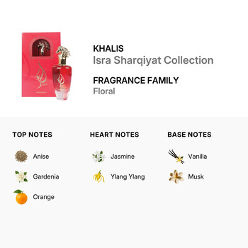 Packaged in an elegantly designed bottle, Khalis Ladies Isra Sharqiyat Collection EDP Spray 3.4 oz not only smells divine but looks stunning on your vanity. Whether you're stepping out for a special event or simply want to uplift your everyday moments, this luxurious fragrance brings a touch of Middle Eastern splendor to your life.