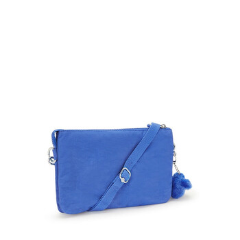 Kipling Ladies Crossbody. SKU: KPKI7590JC71. Barcode: 195436932046. Color: Blue. Size: 6.5 × 24 × 16 cm. Kipling Riri Crossbody Bag in Havana Blue. This lightweight bag features an adjustable strap and a main compartment with a zipped pocket, four open pockets, and compartments for your phone, pen, and wallet, as well as a key clip. It also includes a zipped rear pocket and is finished with a water-repellent finish for added durability.