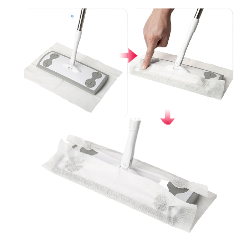 დაამაგრეთ მისთვის განკუთვნილი სველი ქაღალდი მოპის თავზე და გაწმინდეთ ზედაპირი. გამოყენების შემდეგ გადააგდეთ გამოყენებული სველი ქაღალდი.