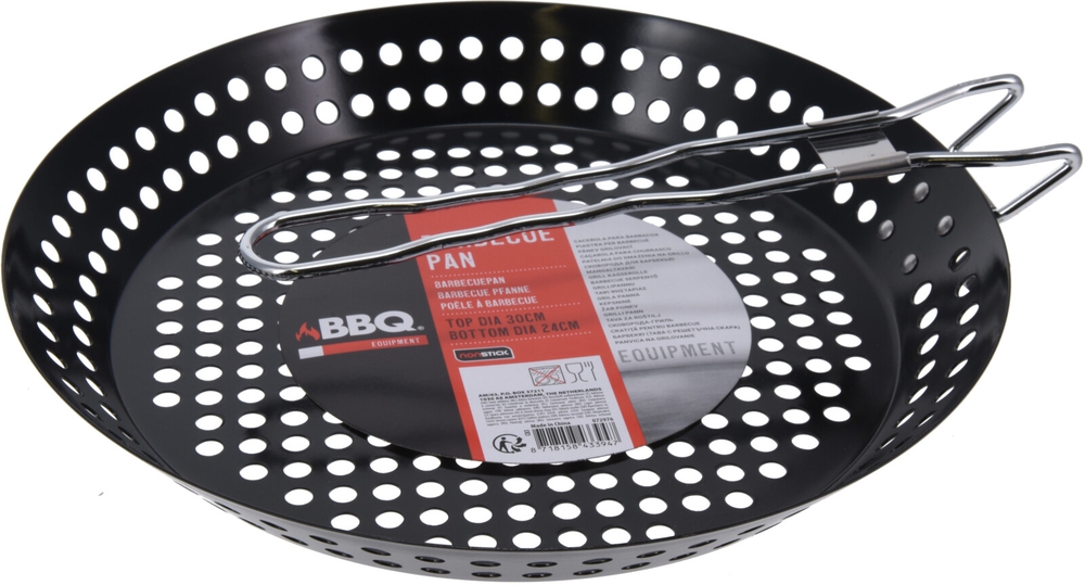 Koopman-ის გრილის ტაფა Outdoor Essentials-ის სერიიდან საჭირო აქსესუარია გრილზე მომზადების მოყვარულთათვის. დამზადებულია მაღალი ხარისხის უჟანგავი ფოლადისგან და აქვს ქრომირებული სახელური. უსაფრთხოა გამოსაყენებლად. საჰაერო ნახვრეტები საშუალებას გაძლევთ მარტივად და კომფორტულად მოამზადოთ სასურველი კერძი გრილზე. ზედაპირის დიამეტრი 30.5 სმ-ია, ხოლო ძირი - ⌀24.5 სმ.
