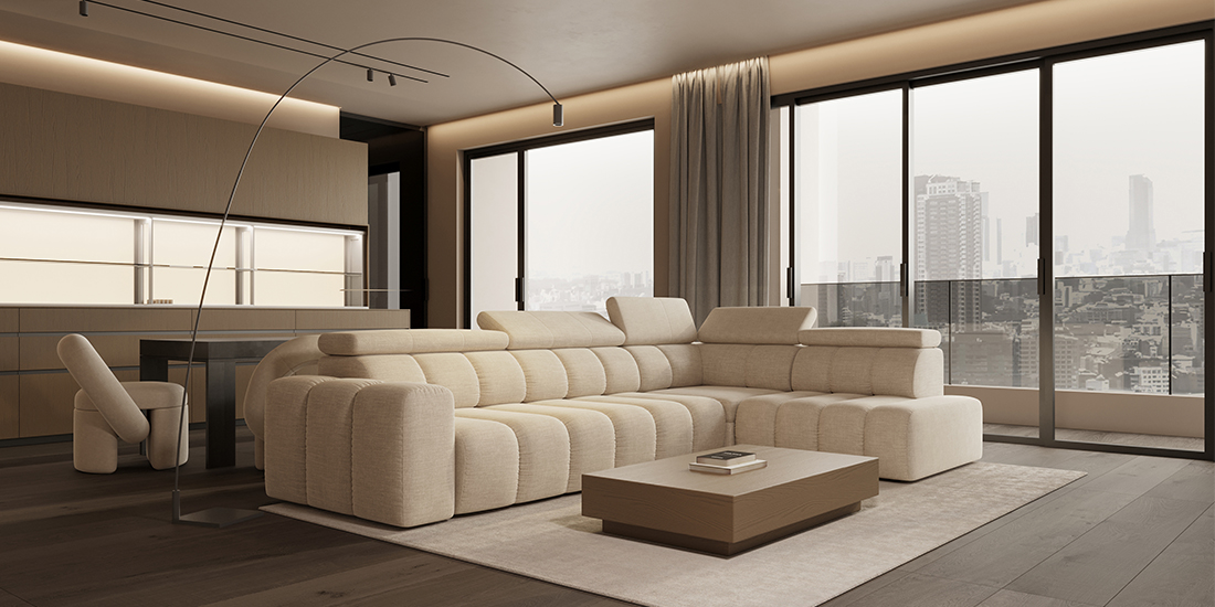 სიგრძე - 345 სმ / სიღრმე - 222 სმ / სიმაღლე - 103 სმ