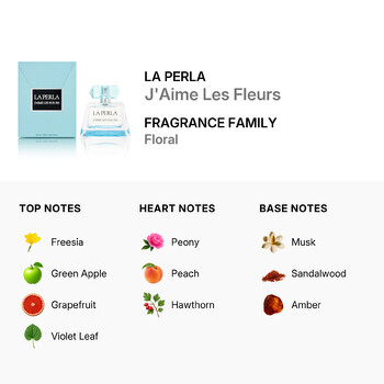 Discover the soft, elegant charm of La Perla Ladies J'Aime Les Fleurs Eau de Toilette Spray, a delicate floral fragrance designed to awaken your senses. Introduced in 2008 by the renowned Italian design house La Perla, this 3.3 oz EDT is a perfect blend of freshness and femininity, crafted especially for women who adore the beauty of flowers and the joy of nature.