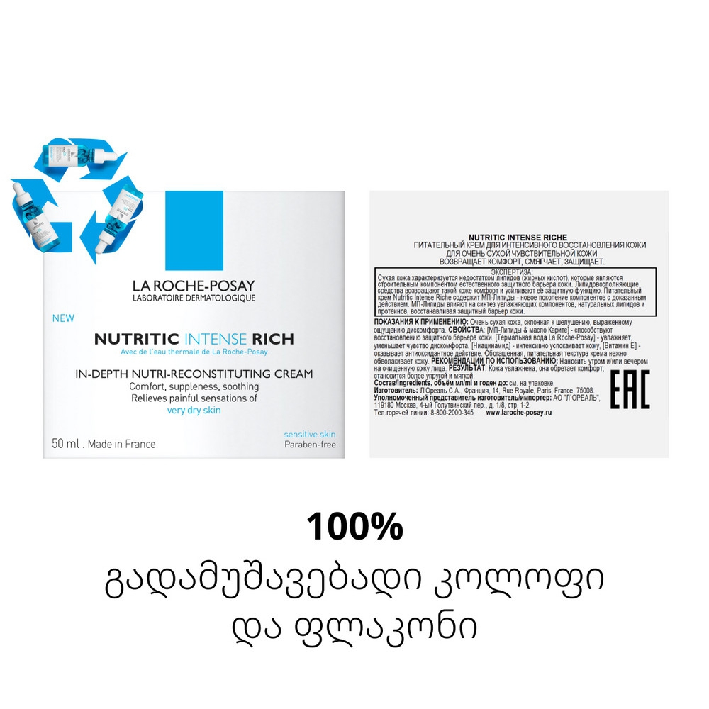 La Roche-Posay Nutritic Intense Riche სახის მკვებავი კრემი მშრალი კანის ინტენსიური აღდგენისთვის 50 მლ