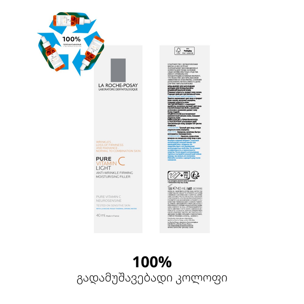 La Roche-Posay Pure Vitamin C ნაოჭების შემავსებელი სახის კრემი ნორმალური და კომბინირებული კანისთვის