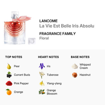 As the fragrance unfolds, the base notes of Whipped cream and Hazelnut add a touch of indulgence, enveloping the wearer in a warm, comforting embrace. This unique combination of scents creates a memorable finish that lingers, making La Vie Est Belle Iris Absolu a testament to the joy of living.