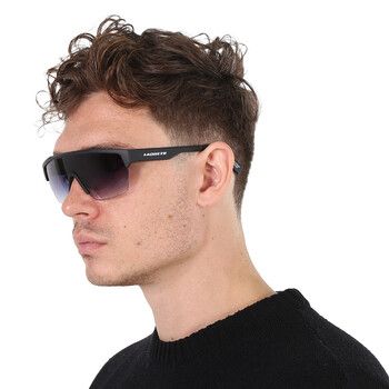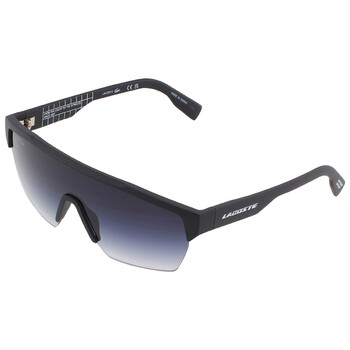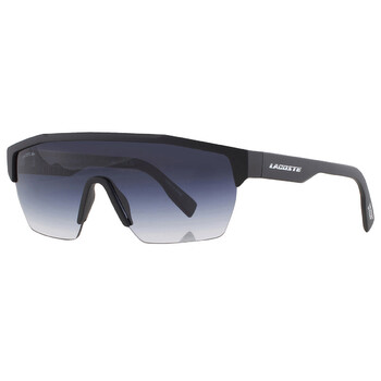 Lacoste Sunglasses. Series number: L989S. Color code: 002. Shape: Shield. Lens Width: 62 mm. Lens Bridge: 19 mm. Arm Length: 135 mm. 100% UV protection. Frame Material: Plastic. Frame Color: Matte Black. Lenses Type: Gradient Blue. Rim Style: Semi-Rimless. UPC/EAN code: 886895570732. Lacoste Gradient Blue Shield Men's Sunglasses L989S 002 62.